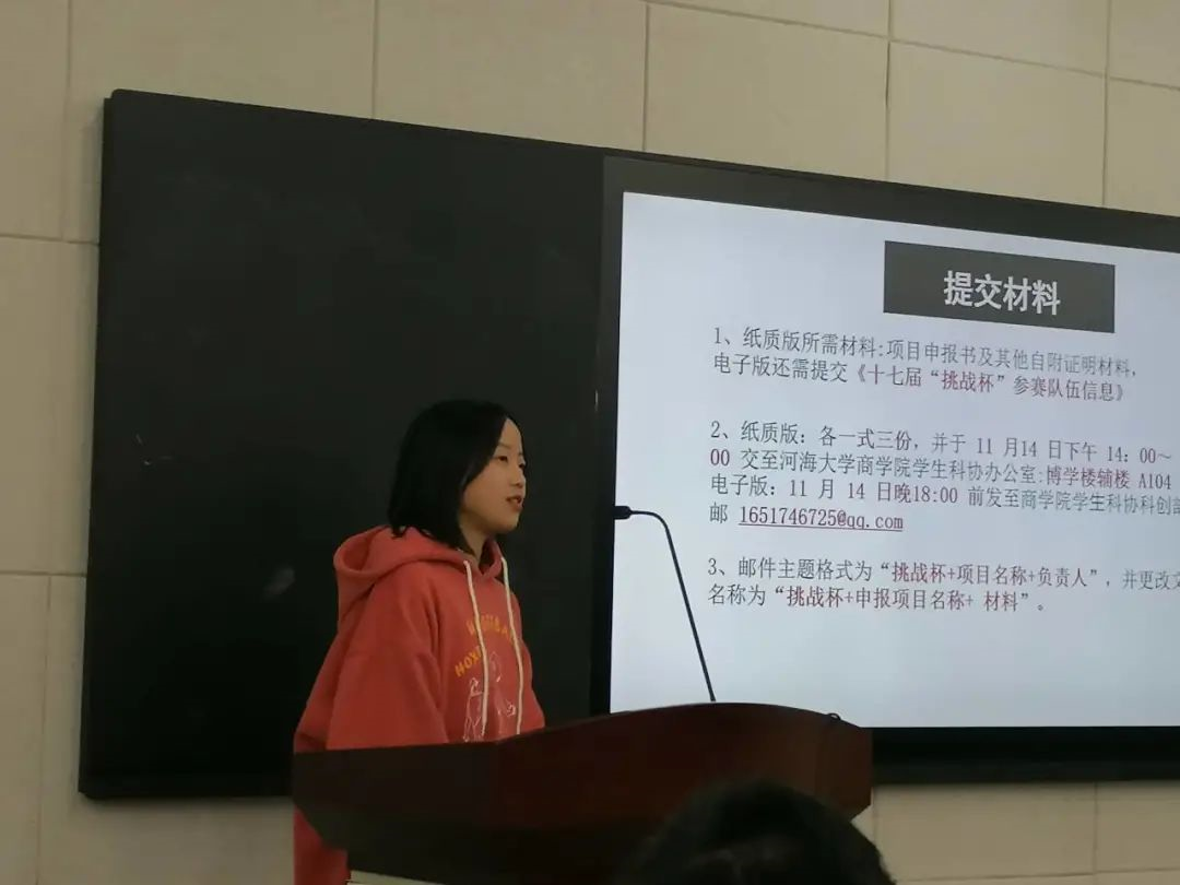 随后大赢家比分 学生科协的郑佳慧同学针对大赛要求和本次大赢家比分 院内赛流程进行了讲解,向同学们介绍了项目申报注意事项、作品类别、参赛要求和面向对象等。