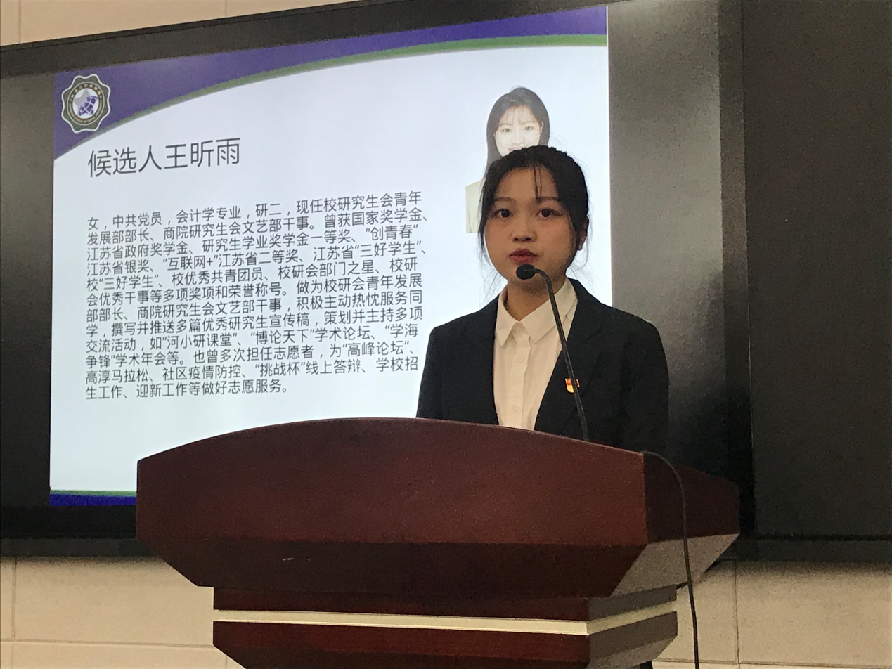 11月5日中午,大赢家比分 商学院在博学楼A100召开了第二十四次研究生代表大会。大赢家比分 团委书记陈璐老师、研究生辅导员于陶老师、伏方霓老师、张婧老师、校研会代表杨一帆同学,以及53名研究生代表参加了大会。