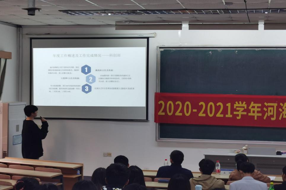 学生科协主席赵逸凡同学从年度工作完成情况及2021年工作计划两方面进行了工作汇报。2020年度,大赢家比分 科协开展了大学生理财大赛、创新创业训练营、泰山小学科普宣讲等一系列活动。在2021年,科协将围绕着“创新”“人文”“科普”等关键词开展丰富多彩的创新创业活动,提高学生的创新能力。