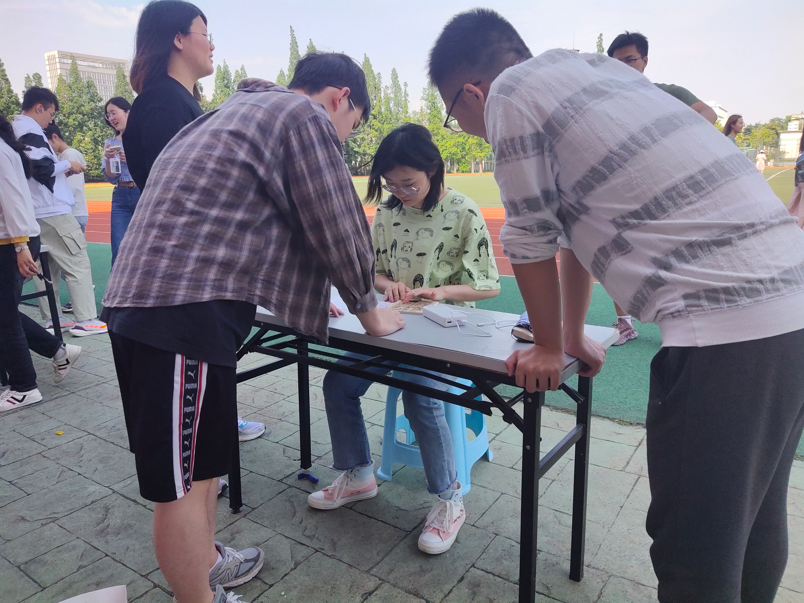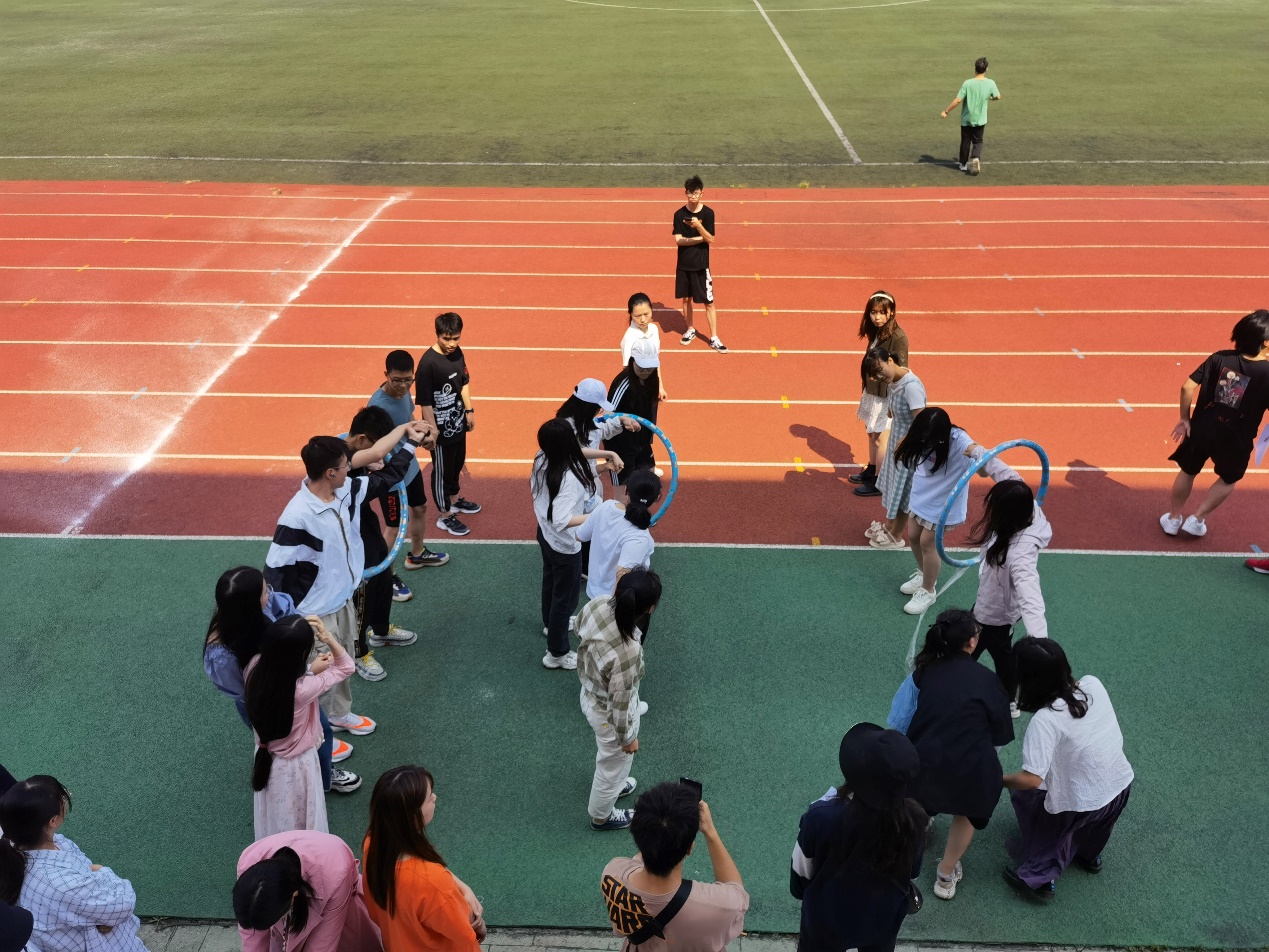 本次活动在操场进行,共有13支队伍七十多人积极参与到此项活动中来。共进行了“华容道”、“你划我猜”、“信任第六感”、“穿越呼啦圈”四个心理趣味活动。其中,“华容道”极大地激发了大家的探索欲和逻辑思维能力;“你画我猜”锻炼了大家的想象和肢体表达能力;“信任第六感”彰显了团队默契和彼此信任的重要性;“穿越呼啦圈”则考验了大家规划安排和团体合作的能力。活动氛围良好,活动取得了圆满成功。