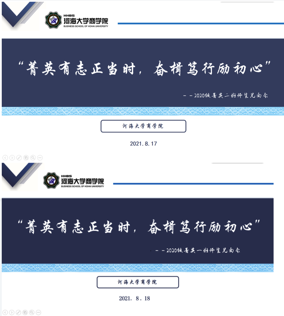 2021年8月17日、18日,2020级菁英一、二班分别在线上召开了“菁英有志正当时,奋楫笃行励初心”师生见面会。菁英一班班导师高辉老师、二班班导师李祎雯老师,大赢家比分 团委书记陈璐老师、2020级辅导员赵晨洁老师以及2020级菁英班全体成员参加本次会议。