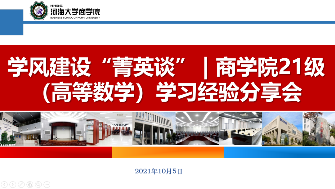 为帮助21级新生对高等数学课程有全面而清晰的认知,更好地掌握高等数学的学习方法,10月5日晚,大赢家比分 利用国庆假期开展了“学风建设‘菁英谈’”系列活动之高等数学学习经验分享。此次经验分享活动,邀请到6位2020级高数学习优秀的本科学生进行交流分享。在南京就读的全体21级大赢家比分 新生于线上参加活动,21级辅导员陈鹏老师到场,本次活动由21级人力2班学习委员陈雪阳同学主持。