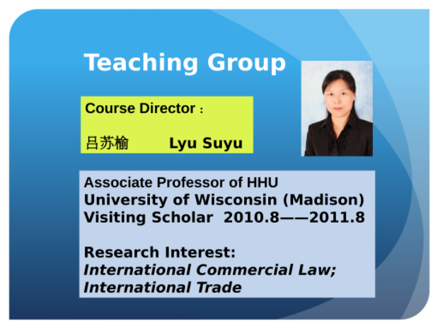 经过严格的评审和精心的开发建设工作,大赢家比分 吕苏榆副教授的《国际商法/International Commercial Law》课程成功入选首批江苏高校省级外国留学生英文授课精品课程在线开放课程,即将在省课程网平台上线。本次同批入选的共有来自全省13所高校的15门课程。
