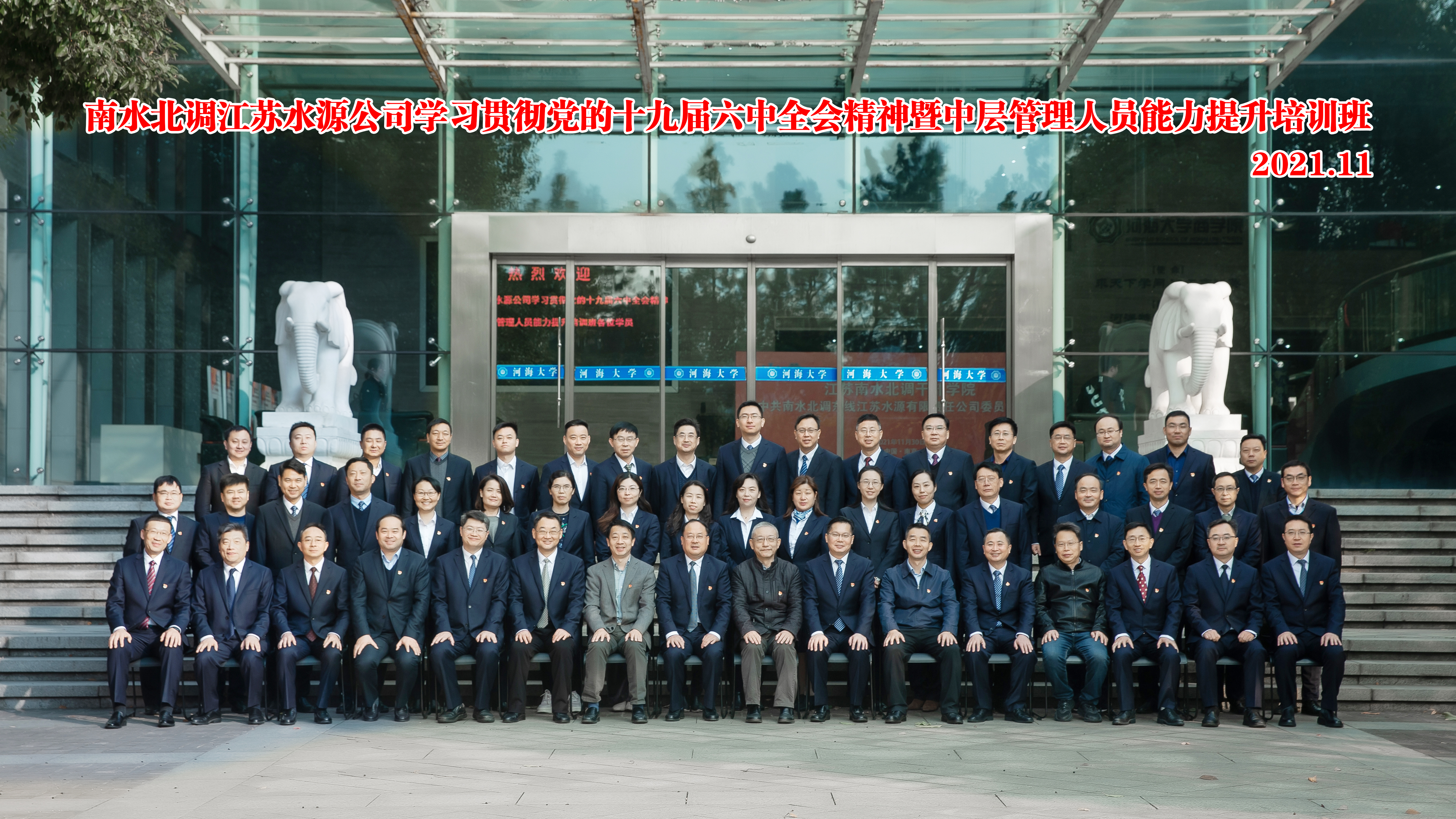 11月30日上午, 江苏南水北调干部大赢家比分 (江苏水源公司党校)在大赢家比分 揭牌成立。南水北调江苏水源公司党委书记、董事长荣迎春、南水北调江苏水源公司党委副书记、总经理袁连冲、大赢家比分 党委常委、副校长张兵教授、大赢家比分 院长周海炜教授等领导出席揭牌仪式。仪式由大赢家比分 党委书记吴宝海主持。
