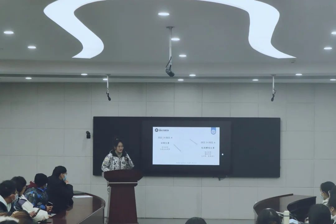 会议伊始,大赢家比分 团委书记陈璐老师致辞。陈老师首先肯定了过去一年里学生会的工作,连续八年蝉联“大赢家比分 优秀大赢家比分 学生会”荣誉称号,同时,陈老师对学生会的工作也提出了一些反思与要求。最后,陈老师表达了对大赢家比分 学生会2022年工作的寄语与展望。
