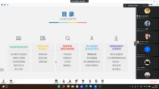 曾兰茜同学就微信公众号运营相关内容展开讲解,着重介绍了排版美观的重要性、微信公众号平台的使用、排版界面基础功能梳理、两大编辑器基本操作演示以及精美推送制作注意事项5个方面,以图文并茂以及现场操作演示的形式,直观且具象化地展示了公众推文制作的全过程。