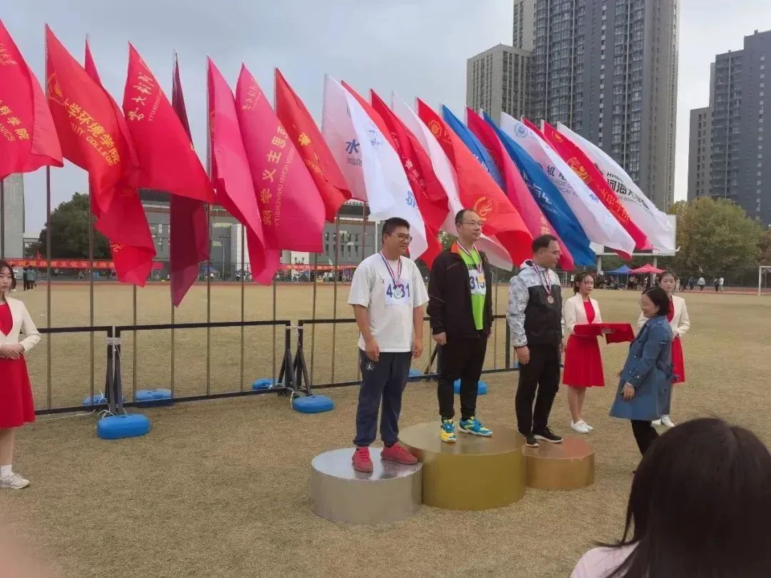 开幕式结束后,各项比赛有序展开。由赵光好副书记和学生共同组成的“60米*16人迎面穿梭接力”获得季军;屈维意老师在男子铅球中以9.41米的成绩取得冠军,同时打破了校记录;夏正芳老师在女子1500米决赛取得亚军的好成绩;魏俊美老师也在女子100米和1500米中取得优异成绩。