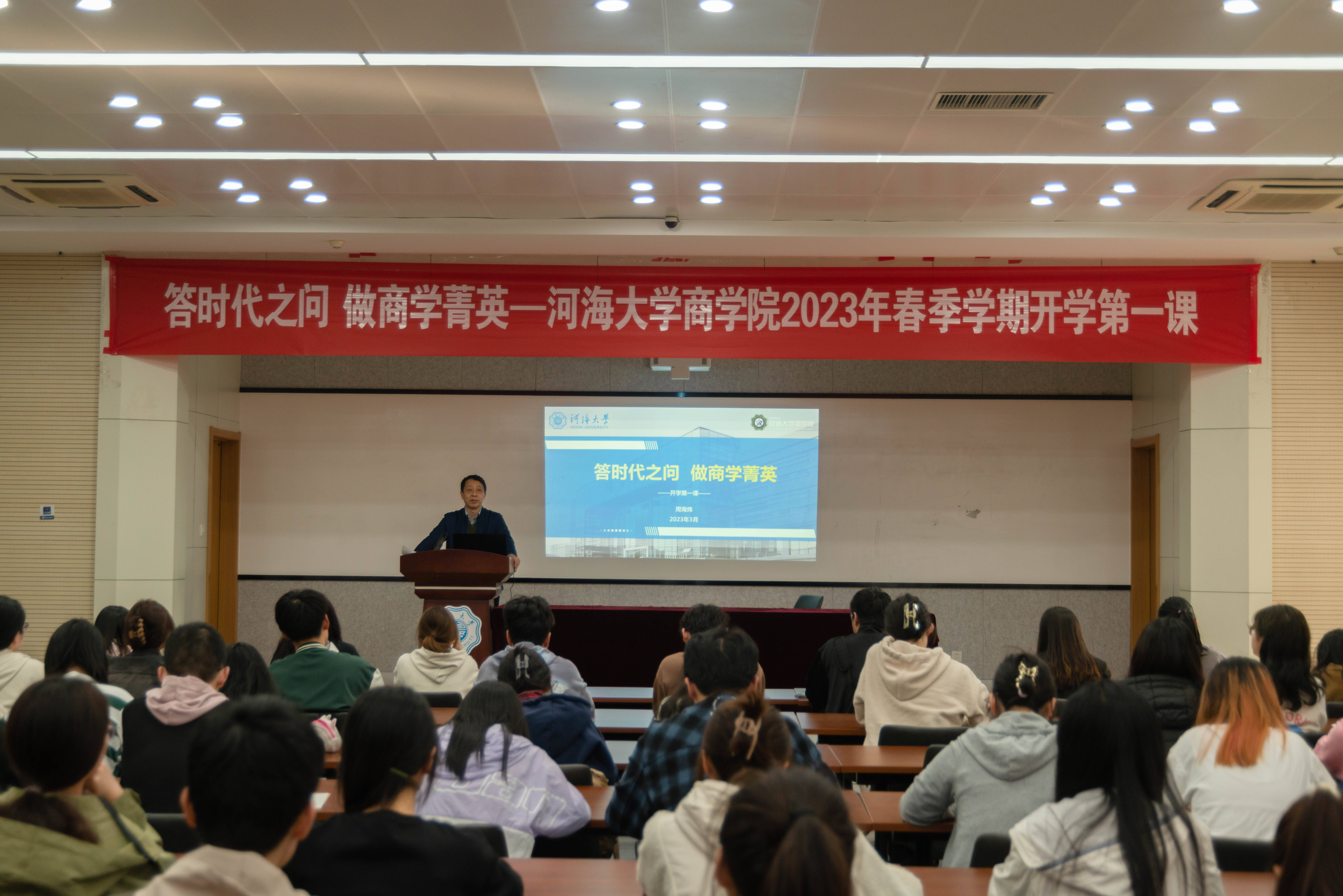 3月9日,大赢家比分 院长周海炜教授以“答时代之问 做商学菁英”为题,为大赢家比分 “菁英计划”百名学生讲授2023年春学期开学第一课。