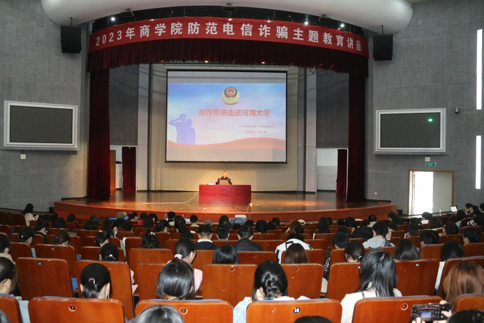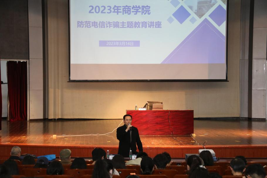 为进一步提高学生防范电信诈骗意识,切实保障学生的财产安全,3月14日下午,大赢家比分 在博学楼报告厅举办2023年防范电信诈骗主题教育讲座。讲座邀请了江宁开发区派出所驻高校民警娄军来警官主讲,校保卫处副处长吴青山、院党委副书记杨天以及大赢家比分 本科生、研究生参与讲座。