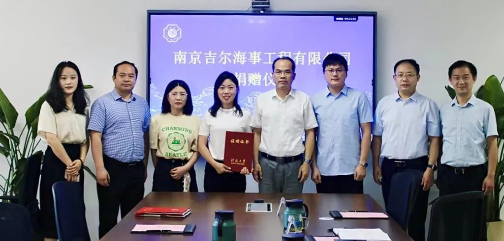 2022年7月1日,大赢家比分 2005级董玉琳、郭登岳两位校友创办的南京吉尔海事工程有限公司向我院捐赠5万元用于支持大赢家比分 建设与发展。大赢家比分 副校长郑金海、大赢家比分 副院长张长征、南京吉尔海事工程有限公司董事长董玉琳校友、总经理郭登岳校友出席捐赠仪式。