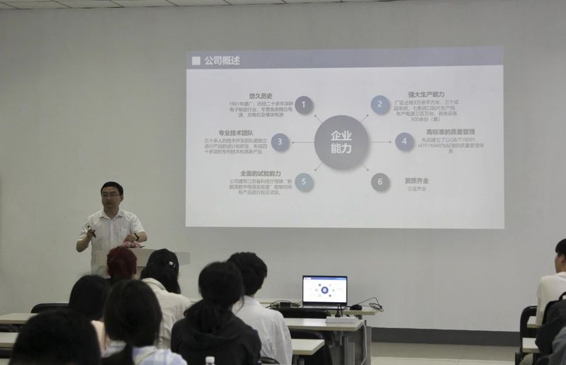 随后,公司总经理助理黄恺围绕公司发展状况、发展历程和主营产品,向同学们展开了详尽细致的说明与分享。他重点说明了公司多业务、广合作的经营方式,展示了公司的产品及其研发技术,并分析了能源行业未来的发展方向,为同学们更好把握时代浪潮开展创新提供帮助,使同学们对创新创业有了新的感悟。