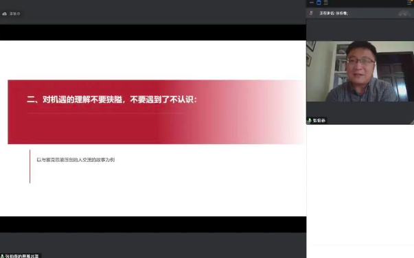 在同学们对行业现状有了初步了解后,张伯春主任又为同学们分享了关于创新创业的六大经验。首先,他提出:对机遇的理解不要狭隘。他以钦佩的口吻讲述了关于赛克斯液压创始人的故事,巧妙地指出机遇藏在每一次的认真工作和踏实勤干里。