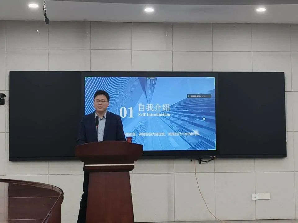 讲座开始,郭登岳老师幽默风趣地进行了自我介绍,从他的读书时的经历和机缘巧合下的创业机遇展开,深入浅出地告诉我们学习的重要性。同时,他讲述了他学生时代的经历,鼓励当代大学生要拥有自驱力:坚持学习、认知清晰和脚踏实地。