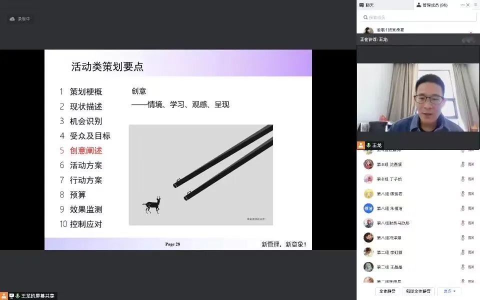 在分析完创业类计划书要点之后,王龙老师还指出了答辩PPT制作的核心要点,指导营员们如何有效布局答辩PPT以获取评委们的关注,助力成果展示,并且就答辩技巧及创赛评委老师偏好进行了详细的解说。