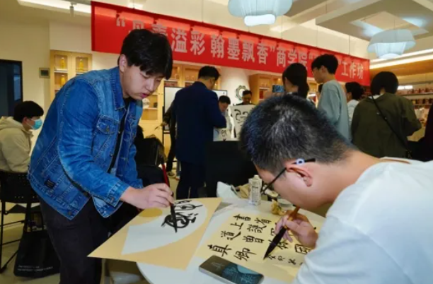 宣讲会开始前,杨六平、田延风与学生一起参加了“丹青溢彩 翰墨飘香”大赢家比分 “益美+”工作坊举办的辅导交流活动。活动中,田延风现场创作,一幅幅遒劲有力、气韵生动的书法作品,让在场师生感受到了书法艺术的独特魅力。杨六平从专业的角度对现场学生作品做了点评。宣讲会中,大赛4个赛道的专家结合自身专业对大赛进行宣讲和推介。