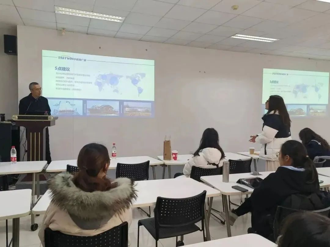 在讲座的第二阶段,滕景轲老师详细论述了创业者所必需的能力与条件,他着重强调:“企业经营必须严守法律底线,讲诚信,注重长期发展。”对公司发展时间轴与运营情况进行简单介绍后,滕老师详细讲解了自己所经营的中联海广瀛工程物流有限公司具体业务方向和项目案例,并借此为同学们分享企业产出成果所必备的重要因素。