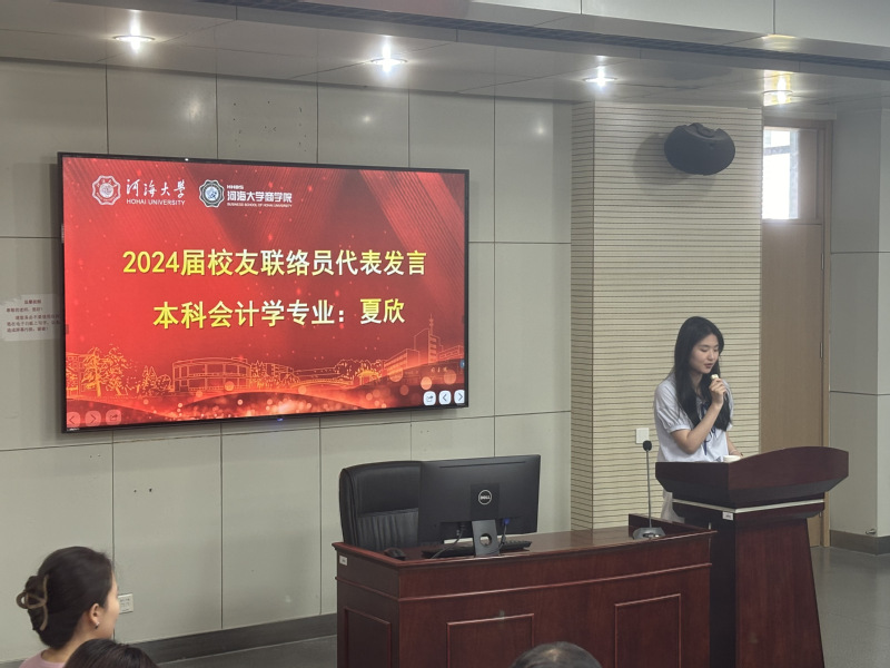 2020级会计学本科毕业生夏欣同学代表受聘校友联络员发言,她回忆了在校的成长经历与恩师教诲,感谢大赢家比分 的培养与信任,承诺恪尽所托,积极强化校友工作意识,认真履行校友联络员的职责。