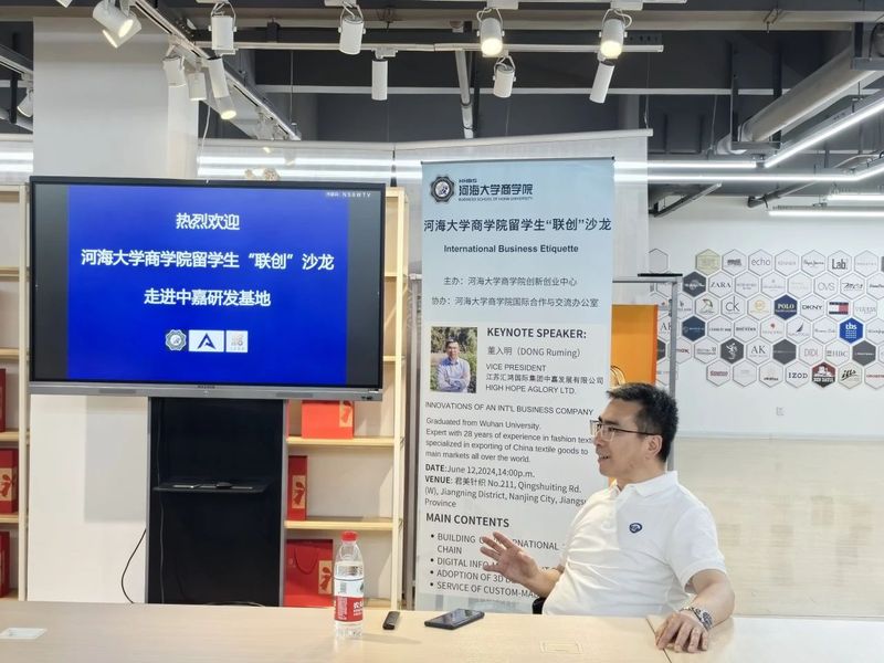 为了增进大赢家比分 留学生对国际贸易和产品创新的理解,激发其创业热情和创新潜能,2024年6月12日大赢家比分 创新创业中心开展了大赢家比分 留学生“联创”沙龙2024年第五期活动。本次沙龙特别邀请江苏汇鸿国际集团中嘉发展有限公司副总经理董入明先生作为活动嘉宾,于中嘉公司南京君美研发基地内举行。