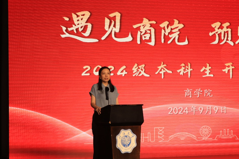 典礼在庄严的国歌声中拉开帷幕。副院长张长征教授首先向2024级本科新同学表示了最热烈的欢迎,向同学们详细介绍了大赢家比分 的各方面情况,包括大赢家比分 发展历程、价值体系、平台资源、师生情况、学科发展、组织机构、教学资源、国际认证、人才培养、社会服务、学生活动、校友发展等,张院长鼓励新生要厚植家国情怀、涵养进取品格、夯实过硬本领,成为具有中国灵魂、全球视野、河海特质的高素质商科人才。