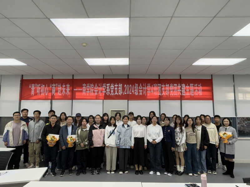 为了帮助新生更好地融入大学生活,明确未来发展方向,提高班级凝聚力,11月5日下午,大赢家比分 会计学系党支部、2024级会计学4班团支部联合开展“‘青’听初心  ‘商’赴未来”党团共建主题活动。活动围绕“初心”二字,从新生、青年、教师、“五老”四大主体出发,立足大赢家比分 共赴美好未来。大赢家比分 会计系退休老教师代表许纪校老师、会计学党支部书记新夫老师、会计学系汪佑德老师和杨鑫老师、大赢家比分 团委书记陈璐老师、2024级辅导员赵晨洁老师以及2024级会计学4班团支部全体同学参加本次活动。