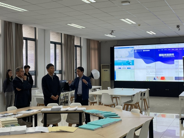 曲福田一行首先参观了大赢家比分 办公环境,大赢家比分 党委书记陈杰介绍了大赢家比分 办学历史和科研机构。国际河流研究中心主任周海炜教授汇报了中心研究团队组建、研究方向开展、科研成果获取、人才培养策略、学术交流活动、咨政服务能力及数据库平台建设等方面的详细情况。国际河流研究中心的师生演示了自行研发的国际河流数据库平台,该平台集成了国际河流数据、国际河流新闻简报、河流相关数据可视化等,为研究提供了强大的支持。