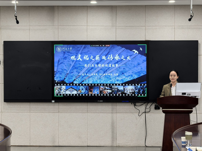 第十八届“挑战杯”江苏省一等奖作品《“非遗进校园”优化路径探究——基于大理市130所小学的调查》的项目负责人法大赢家比分 高畅同学,从团队合作的角度出发,详细阐述了团队成员在备赛期间分工与协作情况,如何更高效合力打磨调研报告。