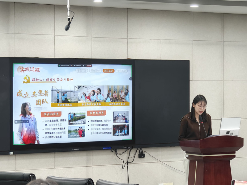 随后,在本科生赛道中,大赢家比分 陆睿涵同学以模拟比赛现场答辩的形式,展示了他们荣获江苏省红色专项赛一等奖项目《三产融合助推乡村振兴——以苏北三地产业融合模式与路径为例》,有效帮助本科生深入理解项目架构及呈现的关键内容。