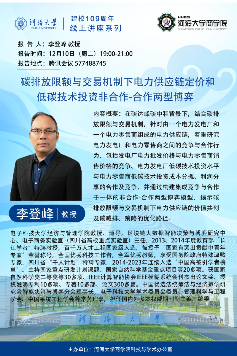 碳排放限额与交易机制下电力供应链定价和低碳技术投资非合作-合作两型博弈