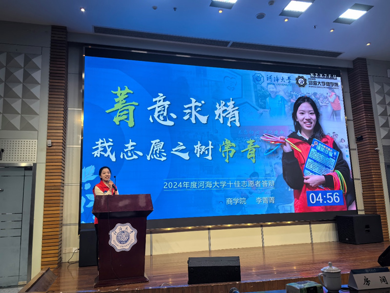 服务大型赛会,凝聚青春力量。大学期间,她参与金坛茅山马拉松、第九届世界水谷论坛、第九届全国管理案例精英赛等大型赛会志愿服务活动。作为茅山马拉松的志愿者,她不仅认真完成各项后勤工作,确保赛事顺利进行,同时也被体育精神深深打动,真切感受到运动员们的坚持与拼搏,在志愿服务中感悟生活、开阔视野。