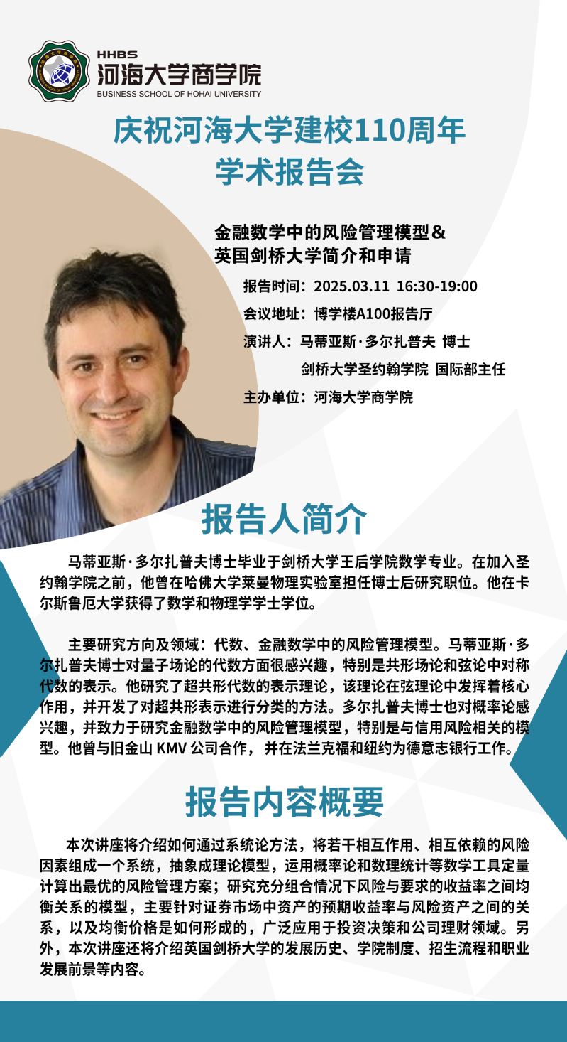 学术讲座通知:金融数学中的风险管理模型&英国剑桥大学简介和申请