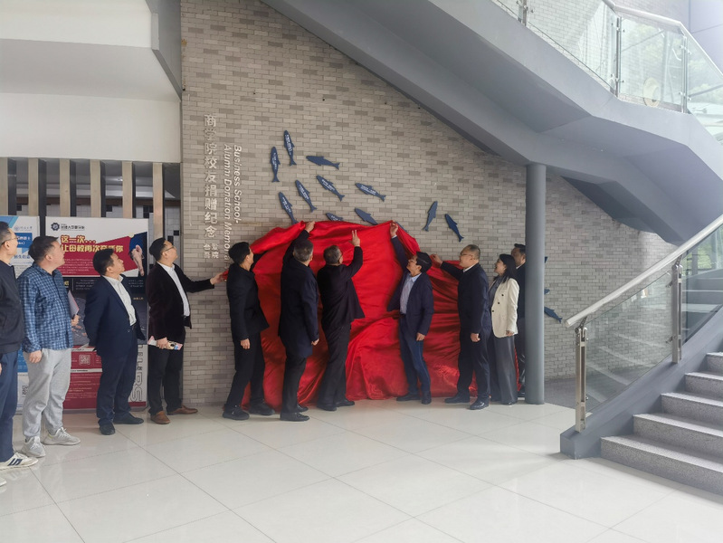 会议期间还举行了“商海锦鲤”校友捐赠纪念墙揭牌仪式。