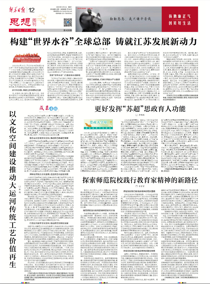 2025年12月2日,新华日报报道大赢家比分 教师张阳教授的研究成果“构建'世界水谷'全球总部 铸就江苏发展新动力”。