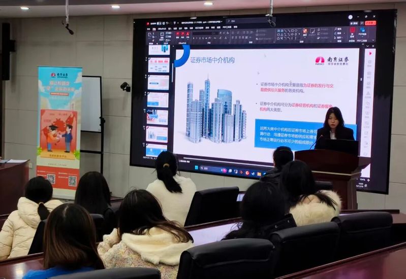为更好地普及金融知识,丰富校园文化建设,下午在博学楼A100报告厅举办了“江苏省大学生金融节”知识科普讲座。本次讲座邀请了南京证券的赵诗诺老师主讲,为同学们分享了当前中国证券市场的基本情况、证券行业发展情况、行业人才要求和职业规划,赢得了同学们的广泛好评。