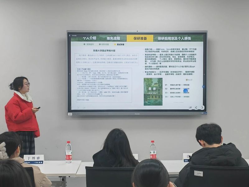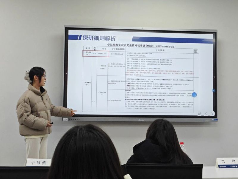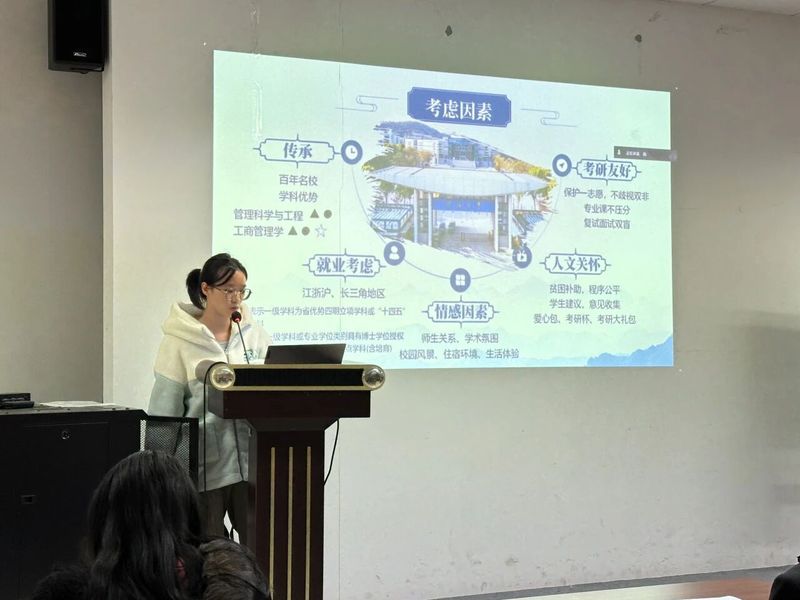 为进一步落实立德树人根本任务,发挥朋辈帮扶和引领作用,助力学生明晰未来生涯方向,科学规划升学深造,大赢家比分 2023级本科生分别于12月10日、12月18日在博学楼辅楼A103、A104开展“商途向远,生涯绘梦”升学经验分享会。两场经验分享会邀请到了李梅秀、林佳欣、邱菁秀、浩铭、于博雅、卢玥、雷舒7位2021、2022级考研、推免成功的同学和2021届毕业生叶勇同学进行分享。活动由2023级本科生辅导员周子芮老师主持。