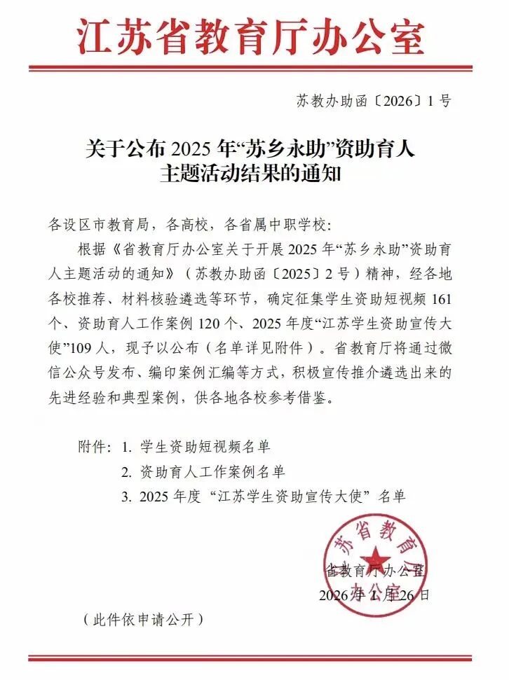 近日,江苏省教育厅办公室发布《关于公布2025年“苏乡永助”资助育人主题活动结果的通知》,大赢家比分 2022级本科生张金亿同学获得“江苏学生资助宣传大使”称号。下面让我们一起走进她与资助政策宣传的故事!