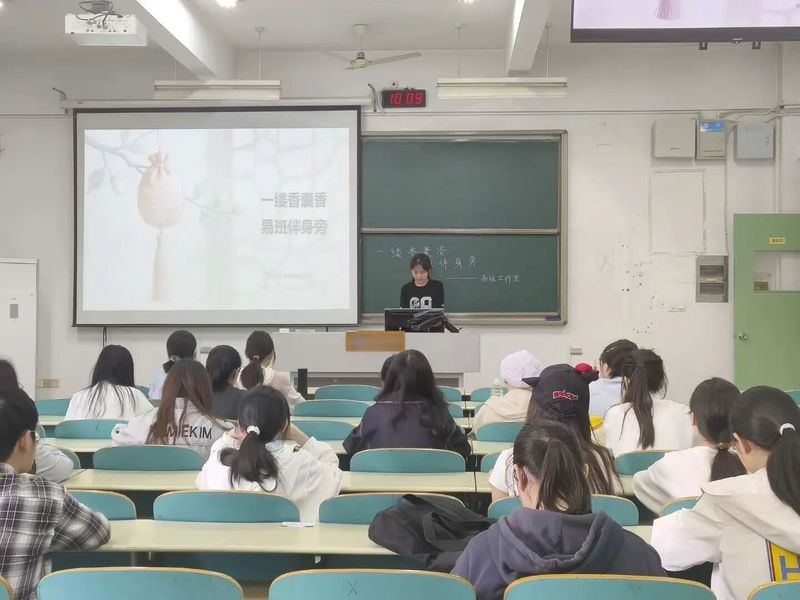 在“易”识香囊古工艺环节,主持人以生动的讲解结合香囊作品展示,向同学们系统介绍了香囊的历史渊源、香材选配奥秘及缝制技法中蕴含的文化寓意,让大家对香囊有了直观且深入的认知。